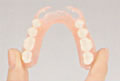 金属を全く使用しない入れ歯で、見た目に優れた義歯です。軽く、柔軟性がありますので、違和感がなく、残った歯への負担も減ります。